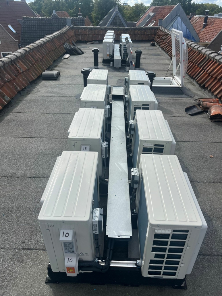 Installatie van airco’s bij 15 appartementen in Hoorn binnenstad. In samenwerking met bouwbedrijf hebben we hier de woningen voorzien van airco units voor het verwarmen en en koelen. Ze gebruiken de airco’s als hooft verwarming waardoor ze zeer lage kosten ervaren in de winter en in de zomer heerlijk koel.